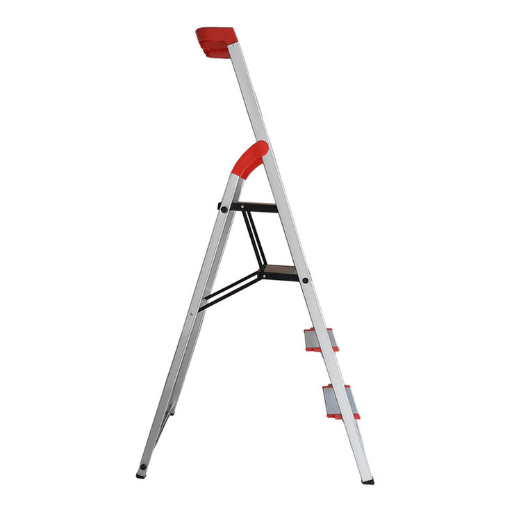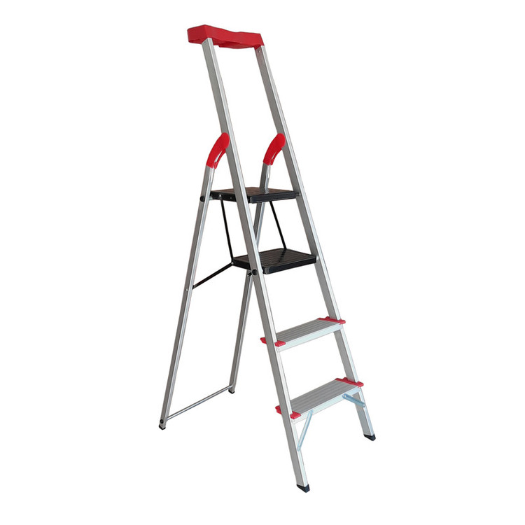 نردبان چهار پله یوکسل +2 از جنس آلومینیوم فابریک و نمونه دیزاین آلمانی است. به نسبت نردبان های قدیمی یوکسل، مدل جدید +2 دارای 2 پله ی پهن در بالای نردبان می باشد و نیز ارتفاع آن 25 سانتی متر بیشتر از مدل های قبلی است که این وجه تمایز دسترسی به ارتفاع بالاتر با همان تعداد پله را میسر می سازد. همچنین طراحی 2 پله ی پهن در بالای این نردبان، ایستادن طولانی مدت در پله ی پایینی را هم برای فرد فراهم ساخته است. این نردبان علاوه بر وزن بسیار کم از استحکام بسیار بالایی نسبت به مدل های قبلی برخوردار است و همین قابلیت این محصول را از سایر محصولات مشابه متمایز کرده است. دیگر ویژگی برجسته ی این نردبان برخورداری از پله های پهن طول 12 سانتیمتری در پایین است که نه تنها به تعادل و امنیت هرچه بیشتر شما کمک می کند، بلکه به زیبایی آن نیز می افزاید و شباهت آن را به نمونههای آلمانی بیشتر میکند. وزن این محصول حدود 6 کیلوگرم با تحمل وزن 130 کیلوگرم است به طوری که هر فردی، حال چه مسن و چه خرد سال به راحتی قادر به حمل آن خواهند بود . ارتفاع این نردبان برای خانههای آپارتمانی بسیار مناسب است و به شما این امکان را میدهد که به نحو احسنت به سقف و یا سطوح بالا دسترسی و تسلط داشته باشید. پایههای این محصول از جنس پلاستیک است و احتمال سر خوردن را به حداقل میرساند و داشتن ابعاد بزرگتر در دو طبقه فوقانی به شما تعادل و راحتی بالایی میبخشد و دچار لرزش نخواهد شد. این نردبان دارای جایگاه ابزار در بخش بالای دسته است و باعث سهولت در انجام کارهایی نظیر دریل کاری، چوب پرده زدن وکارهای فنی است. قسمت بالای نردبان دارای جایگاه تکیه گاه است و به فرد امنیت و تعادل بالایی برای ایستادن در پله ی آخر را می دهد.