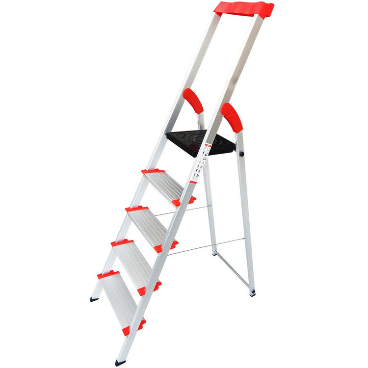 نردبان پنج پله یوکسل از جنس آلومینیوم فابریک و نمونه دیزاین آلمانی است. این نردبان علاوه بر وزن بسیار کم از استحکام بسیار بالایی برخوردار است و همین قابلیت این محصول را از سایر محصولات مشابه متمایز کرده است. دیگر ویژگی برجسته ی این نردبان برخورداری از پله های پهن با طول 12 سانتیمتر است که نه تنها به تعادل و امنیت هرچه بیشتر شما کمک می کند، بلکه به زیبایی آن نیز می افزاید و شباهت آن را به نمونههای آلمانی بیشتر میکند. وزن این محصول حدود 5 کیلوگرم با تحمل وزن 130 کیلوگرم است به طوری که هر فردی، حال چه مسن و چه خرد سال به راحتی قادر به حمل آن خواهند بود . ارتفاع این نردبان برای خانههای آپارتمانی بسیار مناسب است و به شما این امکان را میدهد که به نحو احسنت به سقف و یا سطوح بالا دسترسی و تسلط داشته باشید. پایههای این محصول از جنس پلاستیک است و احتمال سر خوردن را به حداقل میرساند و طبقه فوقانی آن با ابعاد بزرگتر از سایر پلهها به شما تعادل و راحتی بالایی میبخشد و دچار لرزش نخواهد شد. این نردبان دارای جایگاه ابزار در بخش بالای دسته است و باعث سهولت در انجام کارهایی نظیر دریل کاری، چوب پرده زدن وکارهای فنی است. قسمت بالای نردبان دارای جایگاه تکیه گاه است و به فرد امنیت و تعادل بالایی برای ایستادن در پله ی آخر را می دهد.